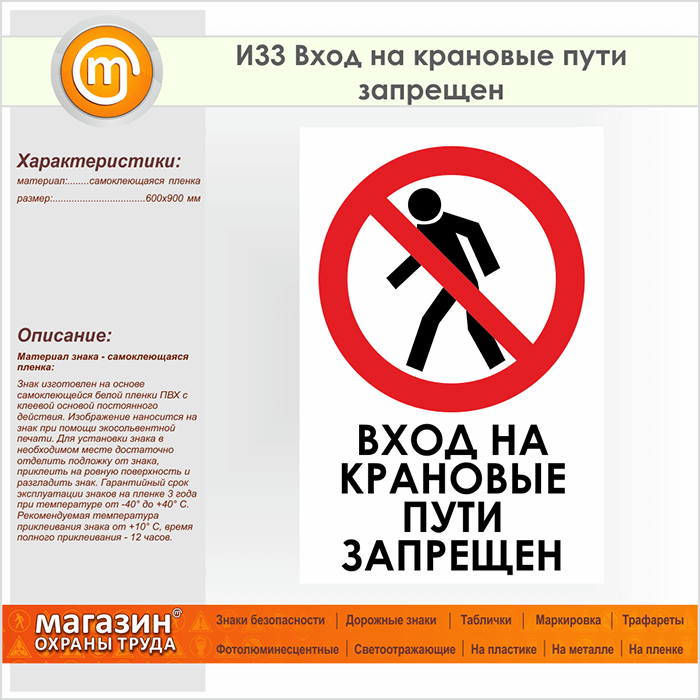 Знак «Вход на крановые пути запрещен», И33 (пленка, 600х900 мм) в Ачинске купить
