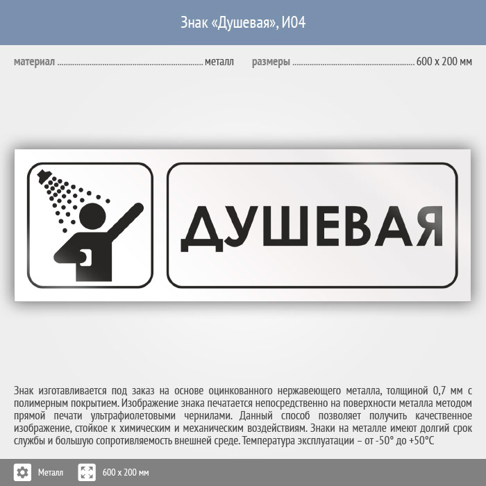 Знак «Душевая», И04 (металл, 600х200 мм) в Ачинске купить