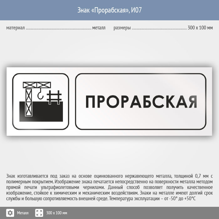 Знак «Прорабская», И07 (металл, 300х100 мм) в Ачинске купить