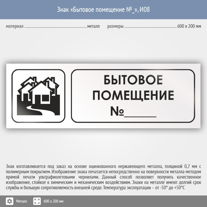 Знак «Бытовое помещение №_», И08 (металл, 600х200 мм) в Ачинске купить