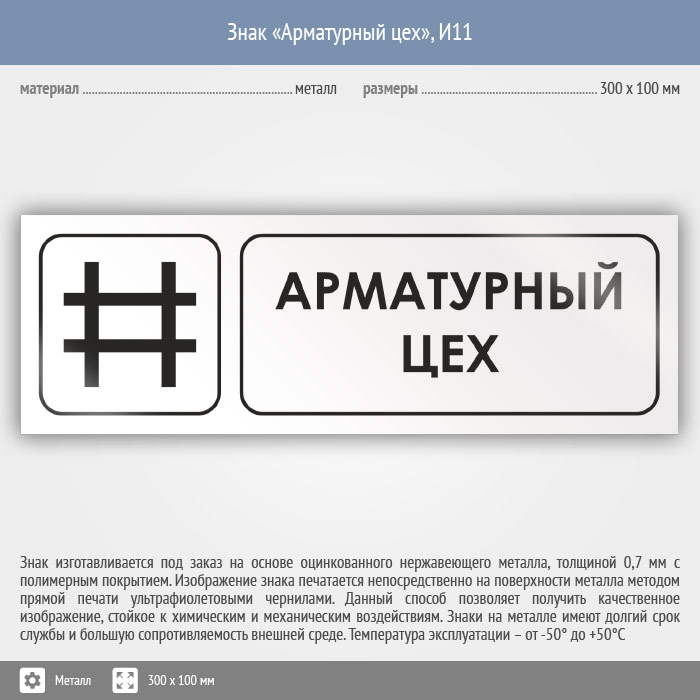 Знак «Арматурный цех», И11 (металл, 300х100 мм) в Ачинске купить