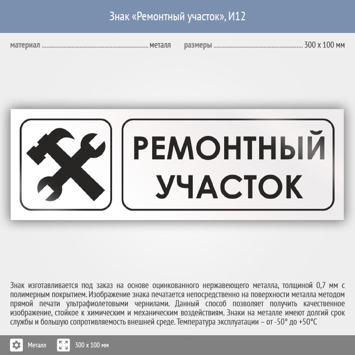 Знак «Ремонтный участок», И12 (металл, 300х100 мм) в Ачинске купить