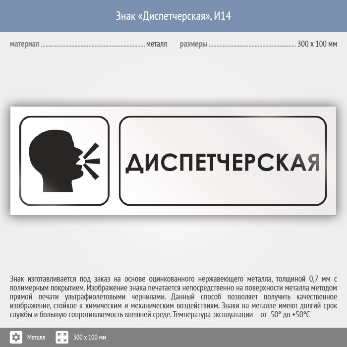 Знак «Диспетчерская», И14 (металл, 300х100 мм) в Ачинске купить