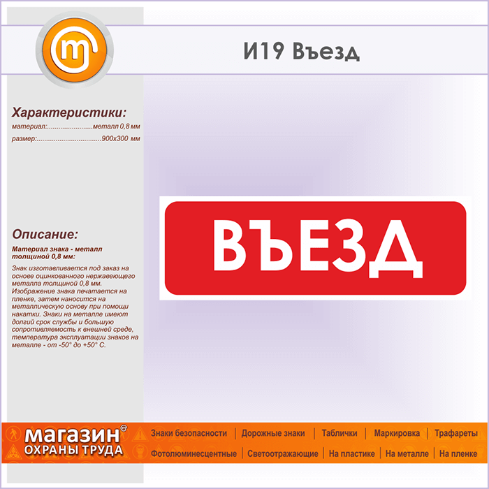 Знак «Въезд», И19 (металл, 900х300 мм) в Ачинске купить