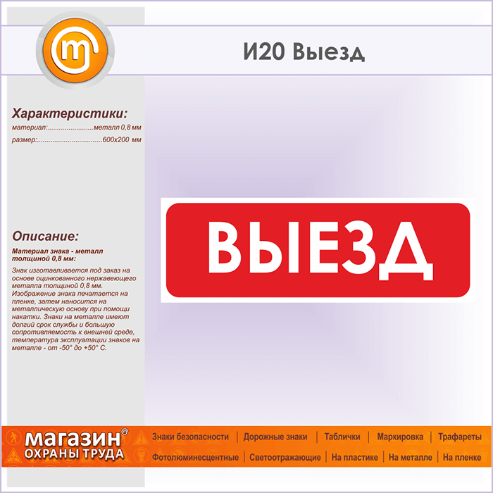 Знак «Выезд», И20 (металл, 600х200 мм) в Ачинске купить
