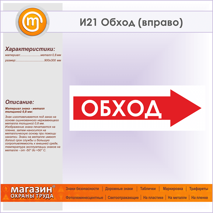 Знак «Обход (вправо)», И21 (металл, 900х300 мм) в Ачинске купить