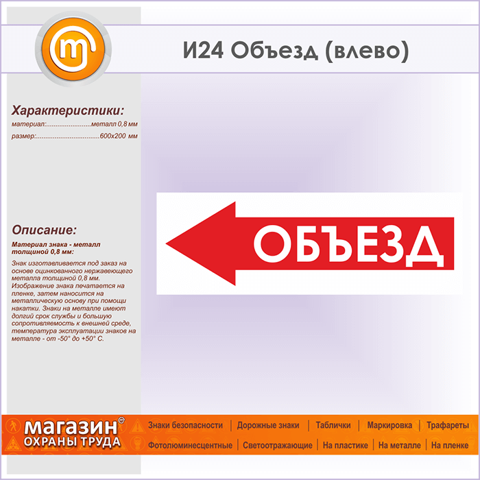 Знак «Объезд (влево)», И24 (металл, 600х200 мм) в Ачинске купить