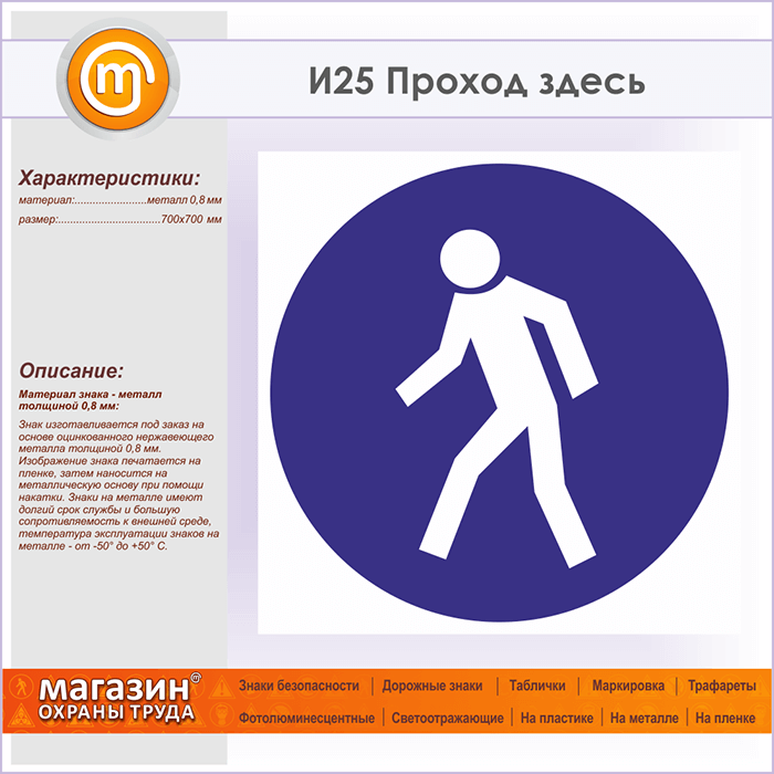 Знак «Проход здесь», И25 (металл, 700х700 мм) в Ачинске купить