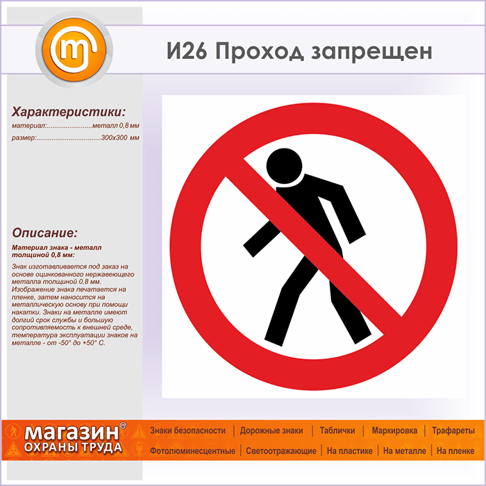 Знак «Проход запрещен», И26 (металл, 300х300 мм) в Ачинске купить