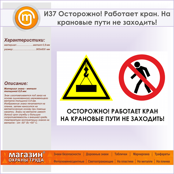 Знак «Осторожно! Работает кран. На крановые пути не заходить!», И37 (металл, 900х600 мм) в Ачинске купить