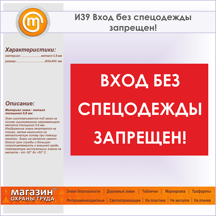 Знак «Вход без спецодежды запрещен!», И39 (металл, 600х400 мм) в Ачинске купить