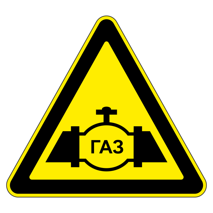 Знак «Осторожно газопровод», МГ-2 (металл 0,8 мм, II типоразмер: сторона 900 мм, С/О пленка: тип А коммерческая) в Ачинске купить