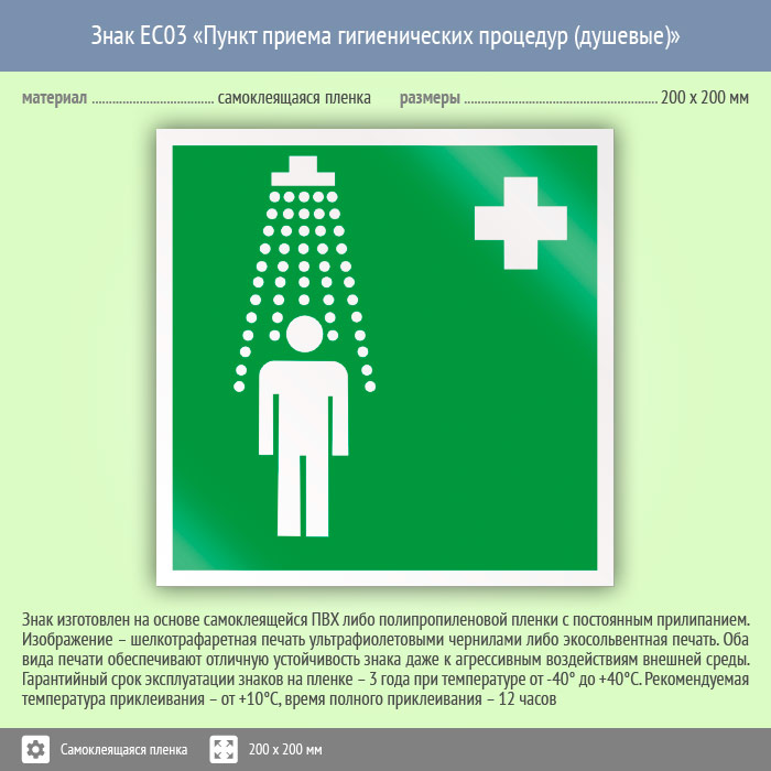 Знак EC03 «Пункт приема гигиенических процедур (душевые)» (пленка, 200х200 мм) в Ачинске купить