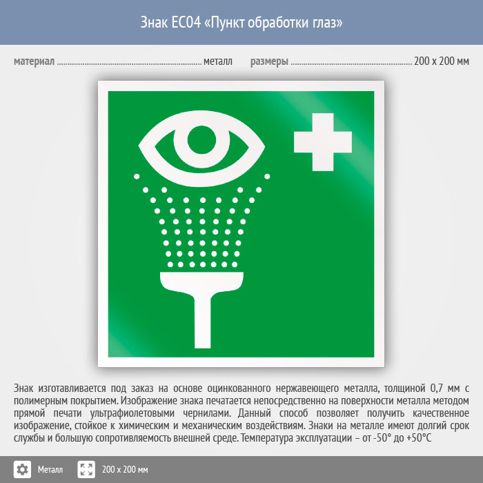 Знак EC04 «Пункт обработки глаз» (металл, 200х200 мм) в Ачинске купить