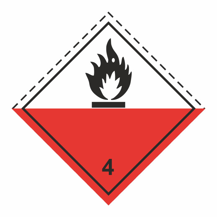Знак перевозки опасных грузов «Класс 4.2. Вещества, способные к самовозгоранию» (светоотражающий металл, 300х300 мм) в Ачинске купить