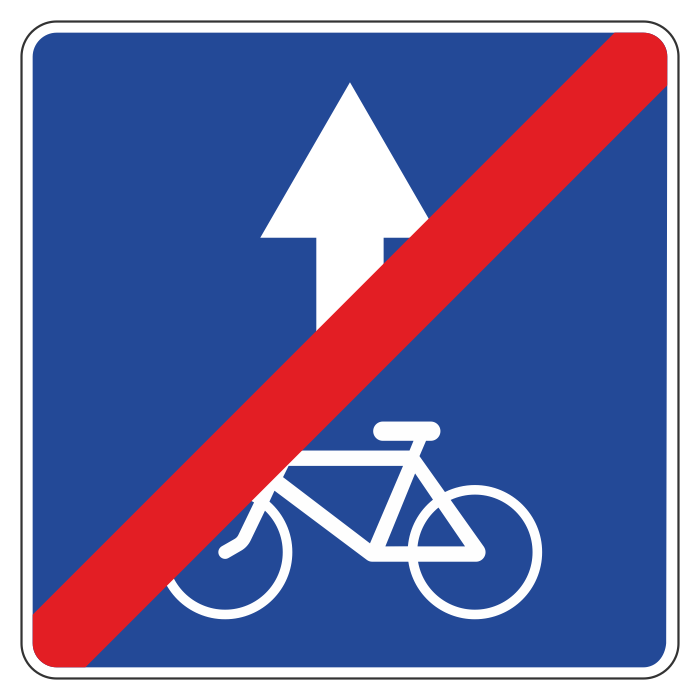 Дорожный знак 5.14.3 «Конец полосы для велосипедистов» (металл 0,8 мм, II типоразмер: сторона 700 мм, С/О пленка: тип А инженерная) в Ачинске купить