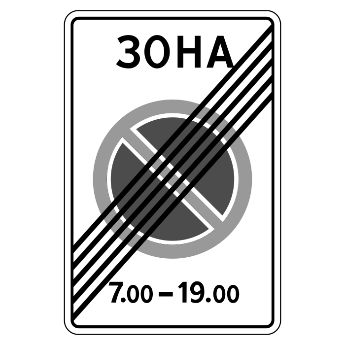 Дорожный знак 5.28 «Конец зоны с ограничениями стоянки» (металл 0,8 мм, I типоразмер: 900х600 мм, С/О пленка: тип Б высокоинтенсивная) в Ачинске купить