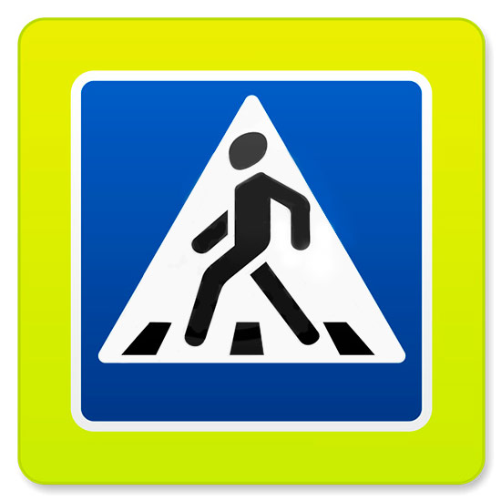 Дорожный знак 5.19.1д «Пешеходный переход» флуоресцентный (металл 0,8 мм, II типоразмер + кант: сторона 900 мм, С/О пленка: тип В алмазная) в Ачинске купить