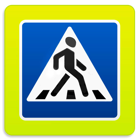 Дорожный знак 5.19.2д «Пешеходный переход» флуоресцентный (металл 0,8 мм, II типоразмер + кант: сторона 900 мм, С/О пленка: тип В алмазная) в Ачинске купить