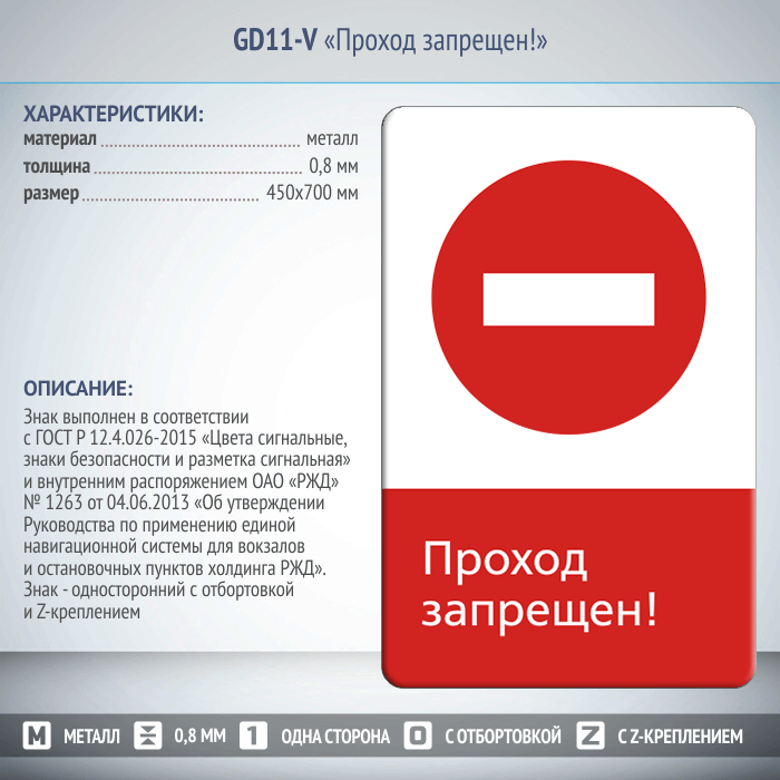 Знак «Проход запрещен!», GD11-V (односторонний вертикальный, 450х700 мм, металл, с отбортовкой и Z-креплением) в Ачинске купить