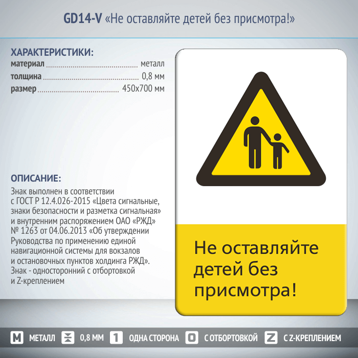 Знак «Не оставляйте детей без присмотра!», GD14-V (односторонний вертикальный, 450х700 мм, металл, с отбортовкой и Z-креплением) в Ачинске купить