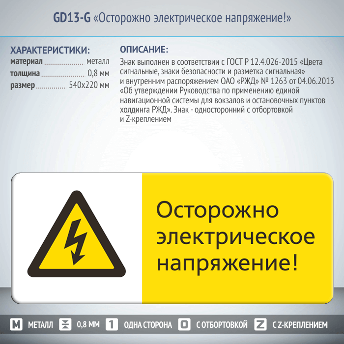 Знак «Осторожно электрическое напряжение!», GD13-G (односторонний горизонтальный, 540х220 мм, металл, с отбортовкой и Z-креплением) в Ачинске купить