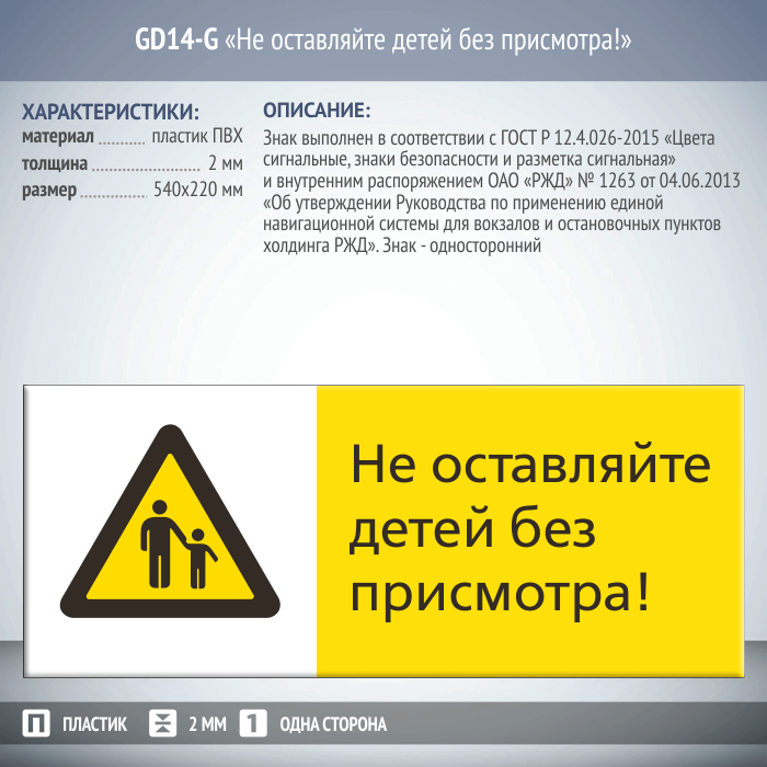Знак «Не оставляйте детей без присмотра!», GD14-G (односторонний горизонтальный, 540х220 мм, пластик 2 мм) в Ачинске купить