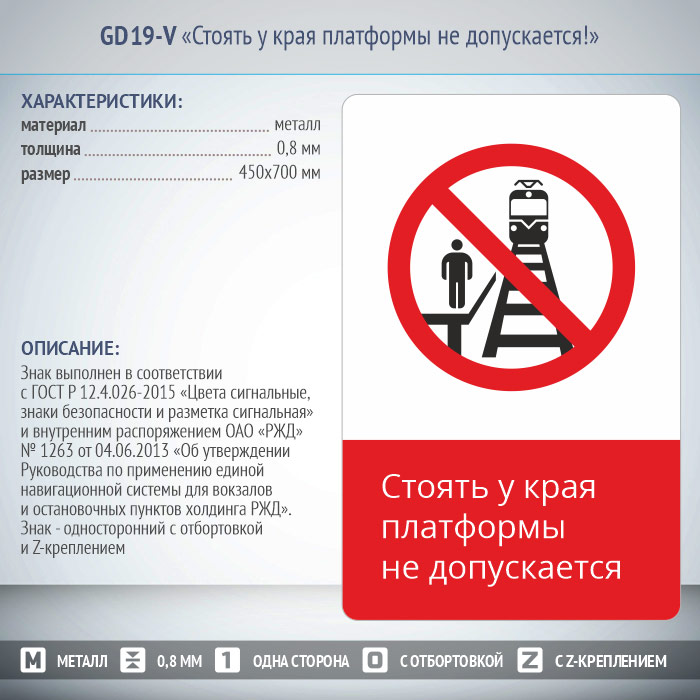 Знак «Стоять у края платформы не допускается!», GD19-V (односторонний вертикальный, 450х700 мм, металл, с отбортовкой и Z-креплением) в Ачинске купить