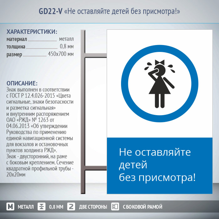 Знак «Не оставляйте детей без присмотра!», GD22-V (двусторонний вертикальный, 450х700 мм, металл, на раме с боковым креплением) в Ачинске купить