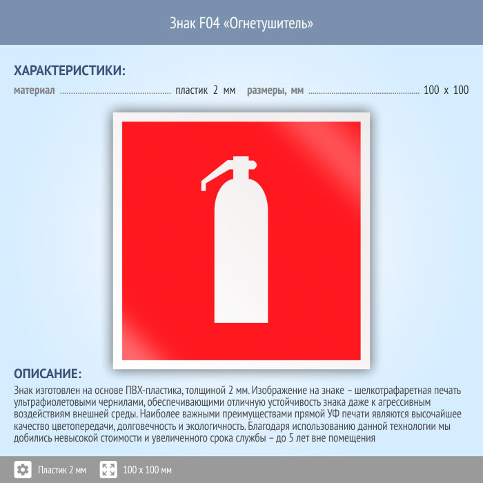 Знак F04 «Огнетушитель» (пластик, 100х100 мм) в Ачинске купить