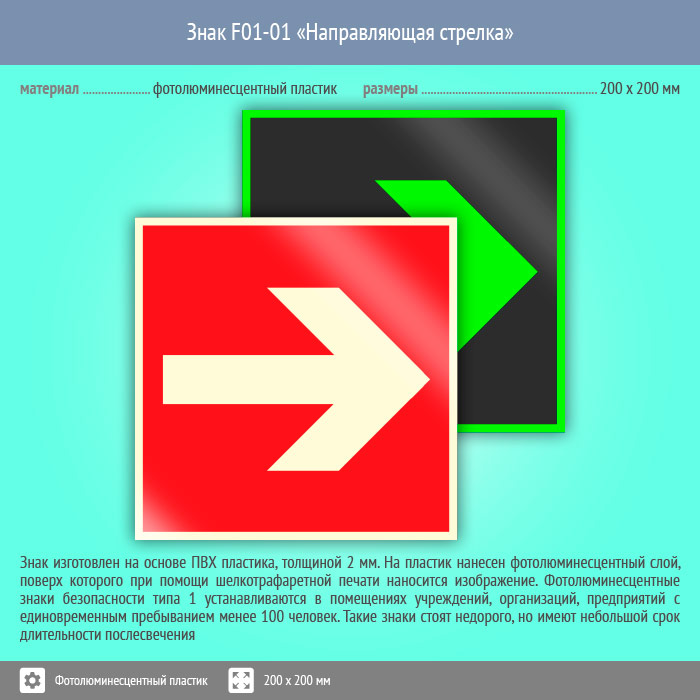 Знак F01-01 «Направляющая стрелка» (фотолюминесцентный пластик, 200х200 мм) в Ачинске купить