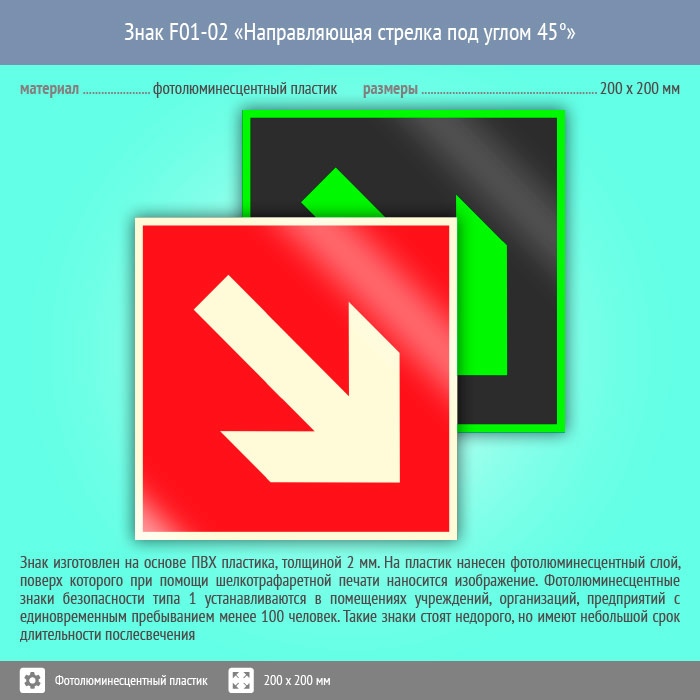Знак F01-02 «Направляющая стрелка под углом 45°» (фотолюминесцентный пластик, 200х200 мм) в Ачинске купить
