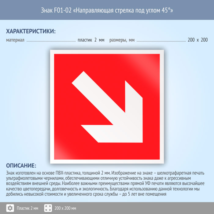 Знак F01-02 «Направляющая стрелка под углом 45°» (пластик, 200х200 мм) в Ачинске купить