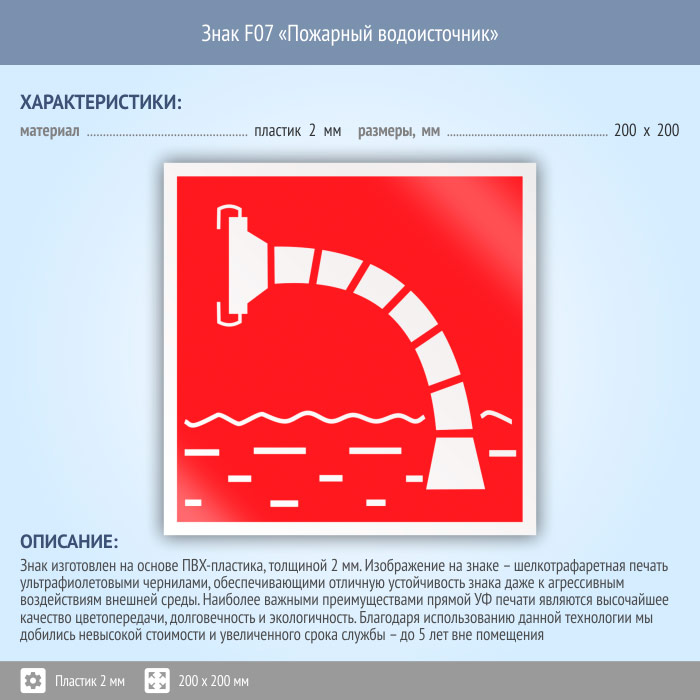 Знак F07 «Пожарный водоисточник» (пластик, 200х200 мм) в Ачинске купить