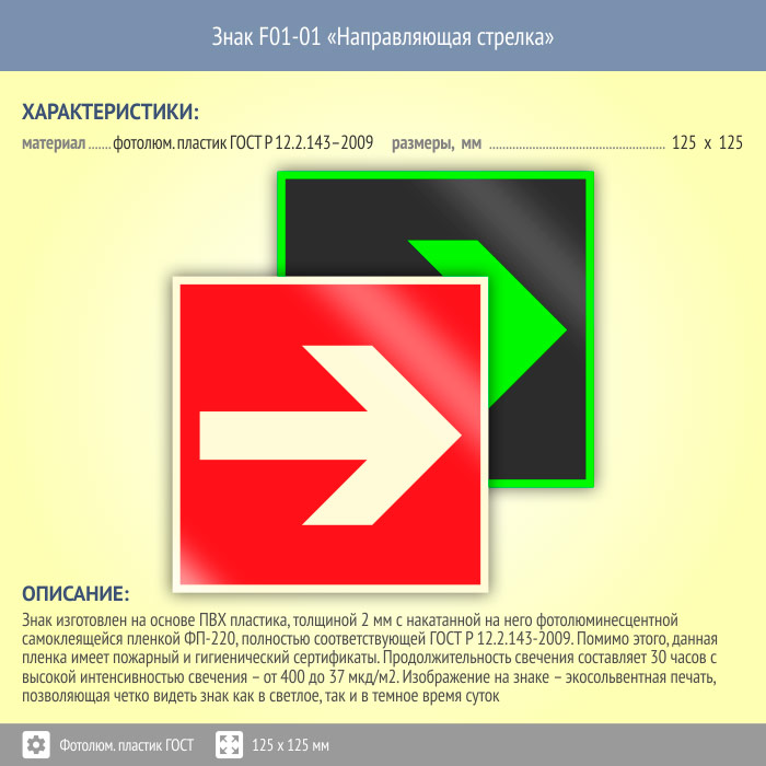 Знак F01-01 «Направляющая стрелка» (фотолюминесцентный пластик ГОСТ 34428-2018, 125х125 мм) в Ачинске купить