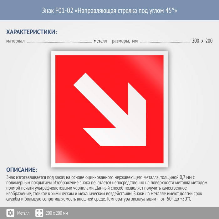 Знак F01-02 «Направляющая стрелка под углом 45°» (металл, 200х200 мм) в Ачинске купить