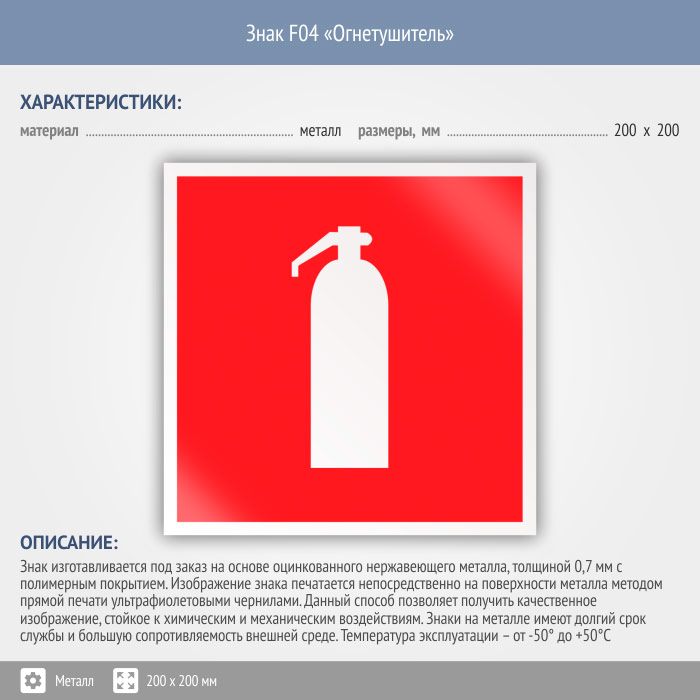 Знак F04 «Огнетушитель» (металл, 200х200 мм) в Ачинске купить