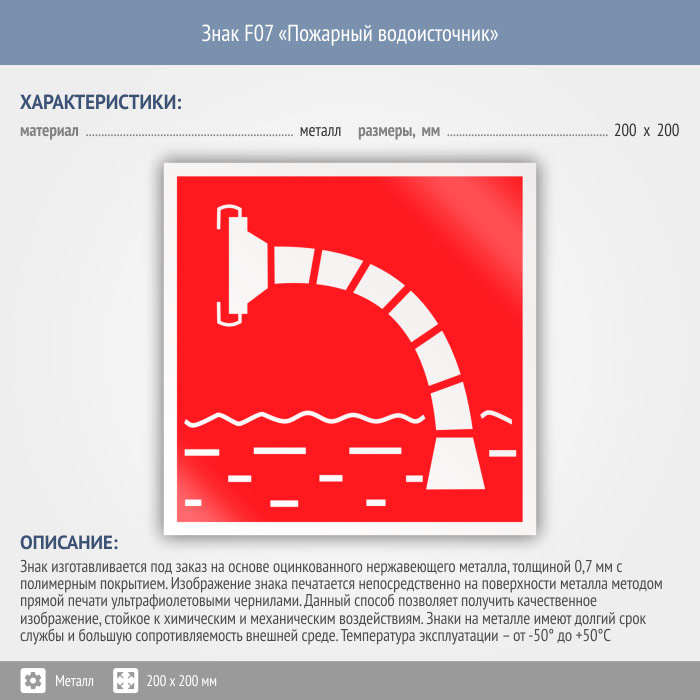 Знак F07 «Пожарный водоисточник» (металл, 200х200 мм) в Ачинске купить