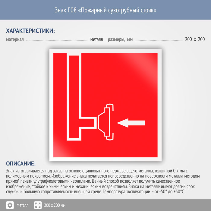 Знак F08 «Пожарный сухотрубный стояк» (металл, 200х200 мм) в Ачинске купить