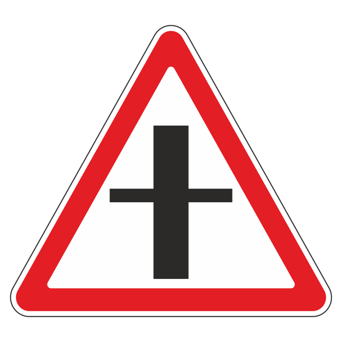 Дорожный знак 2.3.1 «Пересечение со второстепенной дорогой» (металл 0,8 мм, II типоразмер: сторона 900 мм, С/О пленка: тип Б высокоинтенсивная) в Ачинске купить