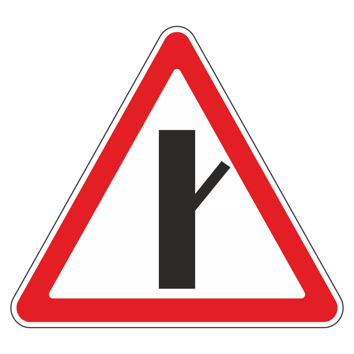 Дорожный знак 2.3.4 «Примыкание второстепенной дороги справа» (металл 0,8 мм, I типоразмер: сторона 700 мм, С/О пленка: тип А инженерная) в Ачинске купить