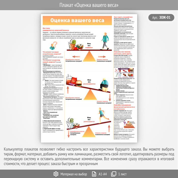 Плакат «Оценка вашего веса» (ЗОЖ-01, 1 лист) в Ачинске купить