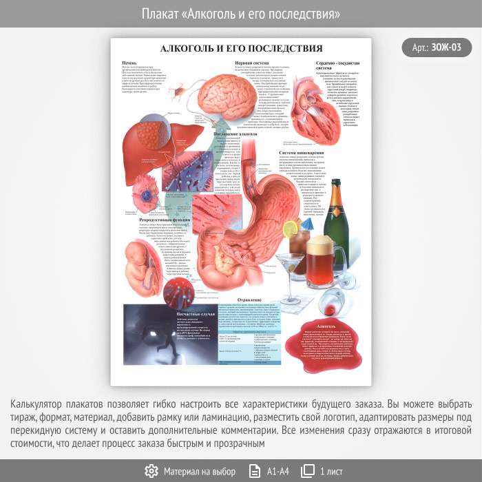 Плакат «Алкоголь и его последствия» (ЗОЖ-03, 1 лист) в Ачинске купить