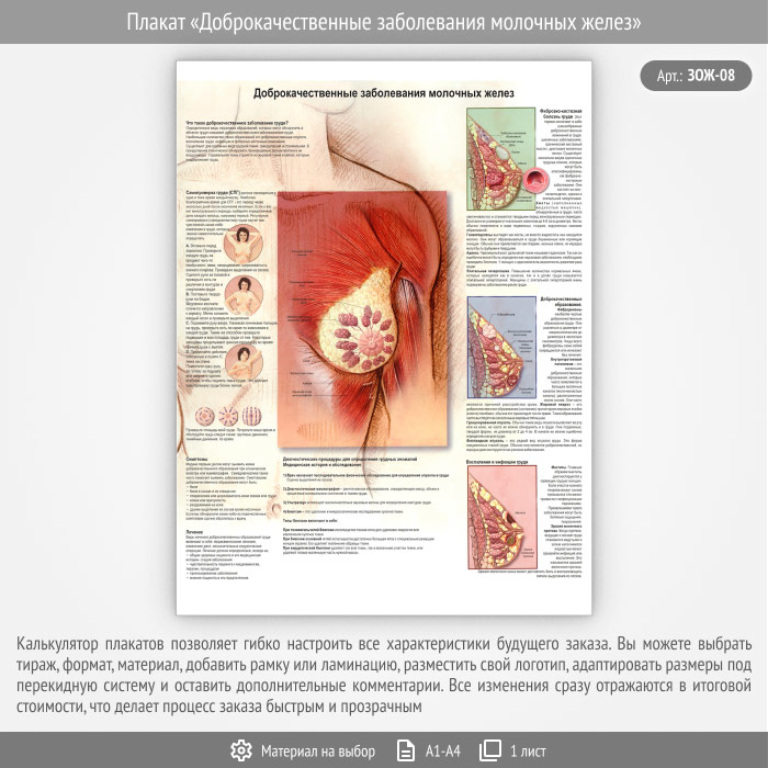 Плакат «Доброкачественные заболевания молочных желез» (ЗОЖ-08, 1 лист) в Ачинске купить