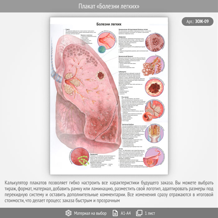 Плакат «Болезни легких» (ЗОЖ-09, 1 лист) в Ачинске купить