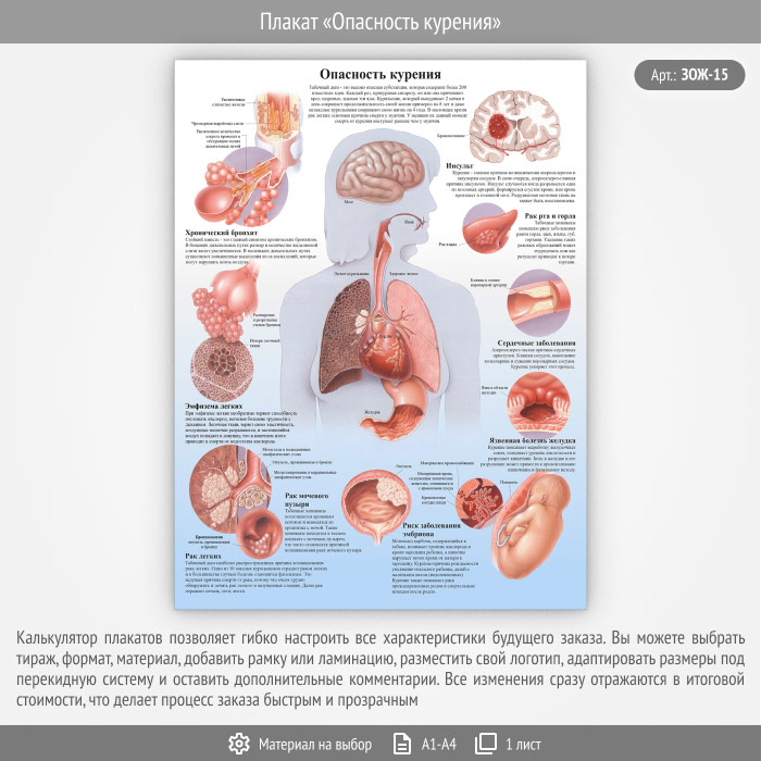 Плакат «Опасность курения» (ЗОЖ-15, 1 лист) в Ачинске купить