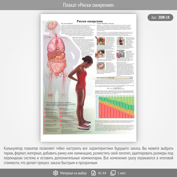Плакат «Риски ожирения» (ЗОЖ-18, 1 лист) в Ачинске купить