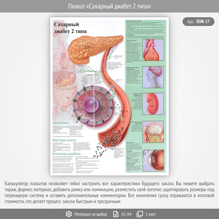 Плакат «Сахарный диабет 2 типа» (ЗОЖ-27, 1 лист) в Ачинске купить