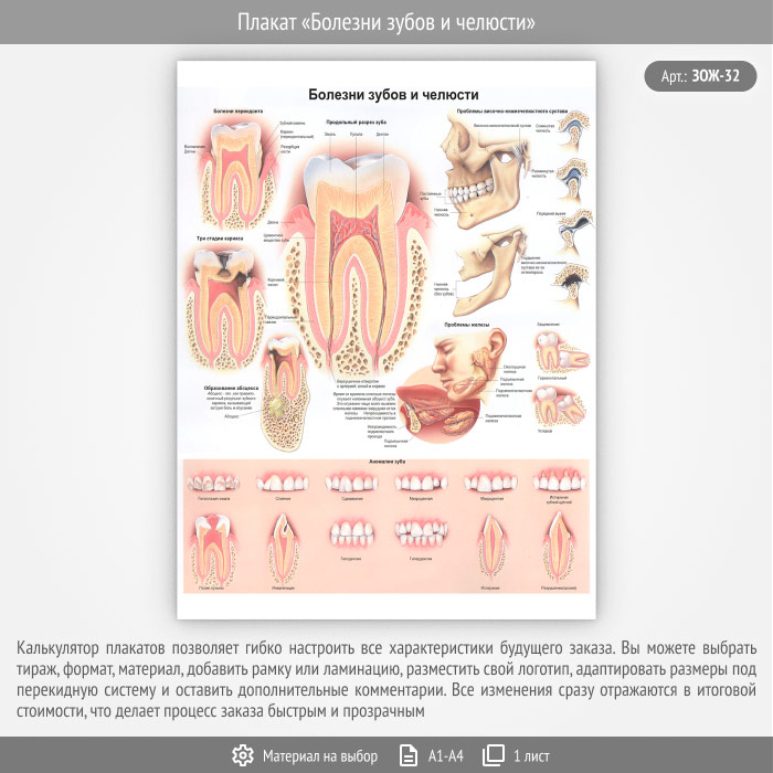 Плакат «Болезни зубов и челюсти» (ЗОЖ-32, 1 лист) в Ачинске купить