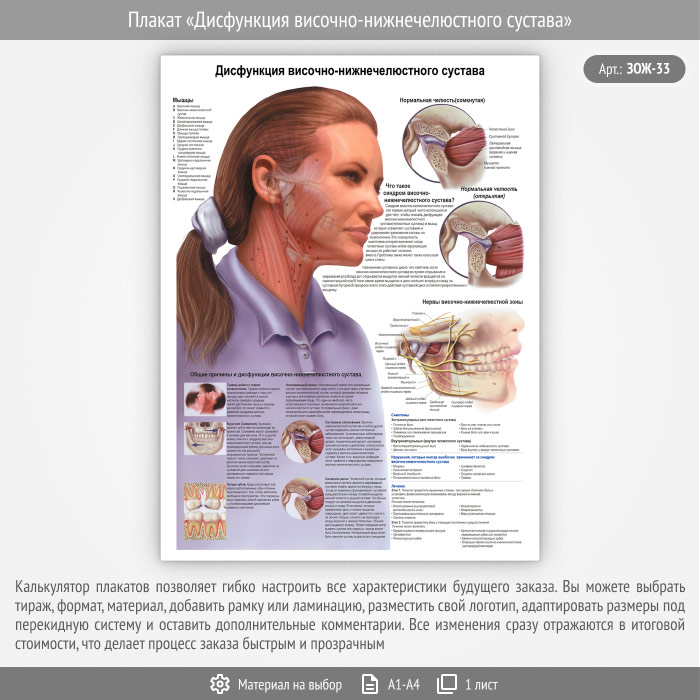 Плакат «Дисфункция височно-нижнечелюстного сустава» (ЗОЖ-33, 1 лист) в Ачинске купить